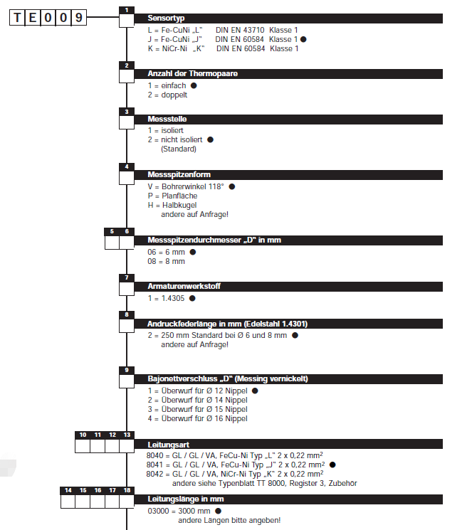 傳感器類型:1 x Fe Cuni J型DIN EN 60584
